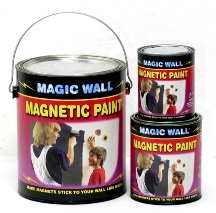 Kling Magnetics Magic Wall Magnetic Paint is an acrylic latex water-based primer that turns any wall into a magnetic receptive surface.